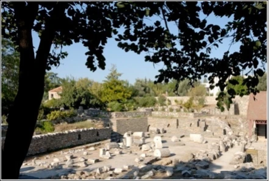 Sanctuarium Athenæ Lindiæ (IV s. a.Ch.n.), ab Italis partim restauratum.