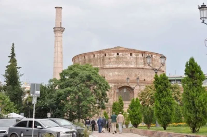 Thessalonica, cui anno 315 a.Chr.n. rex Cassander nomen dedit uxoris, inter longam historiam suam sæpe est expugnata, capta, liberata, direpta, transformata, deleta, restructa, expilata, profanata, ut in urbe toties refecta haud multa conspiciantur antiquitatis vestigia. Videmus forum iuxta deversorium nostrum, mausoleum Galerii «rotundam» vocatum, Turcorum Turrem Albam, in vetere vico parvam ecclesiam quarti decimi sæculi cuius picturæ animum tangunt et, ad litus maris, statuam… Alexandri Magni.