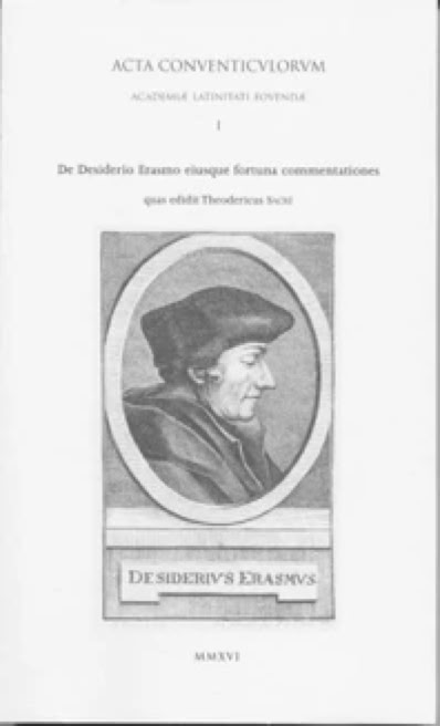 Hoc libro edita sunt Acta Conventiculi Academiae Latinitati Fovendae anno 2011 Romae habiti, cuius argumentum fuit hoc: De Desiderio Erasmo eiusque fortuna commentationes. Eum Academia venalem habet apud sodalitatem Melissam.